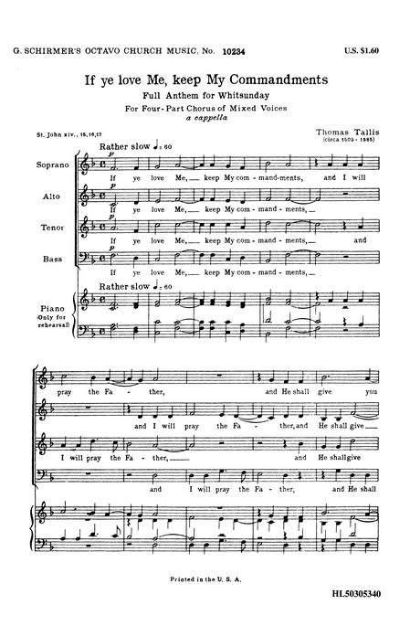 Thomas Tallis If Ye Love Me Keep My Commandments Presto Music